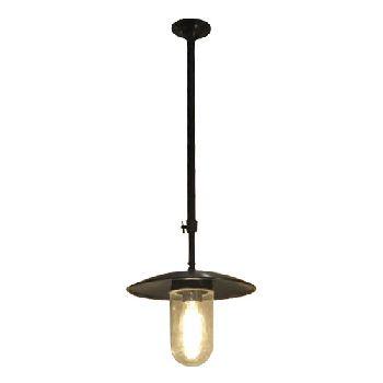 Lampe Luton suspendue sur tige. Une lumière. Fini noir avec abat-jour en verre clair. Exige une ampoule A15 de 60 watts, non comprise.