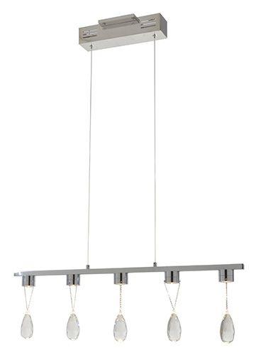 Lampe suspendue ajustable avec 5 lumière DEL. Collection Reflex, fini chrome avec bijoux de cystal. Exige 5 ampoules DEL de 2.5 watts